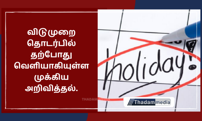 விடுமுறை தொடர்பில் தற்போது வெளியாகியுள்ள முக்கிய அறிவித்தல்.