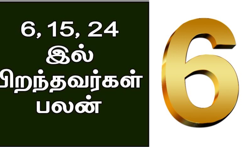 6,15,24 ஆகிய எண்களில் பிறந்தவர்கள் 6ம் எண்ணின் ஆதிக்கத்திற்குரியவர்கள்.
